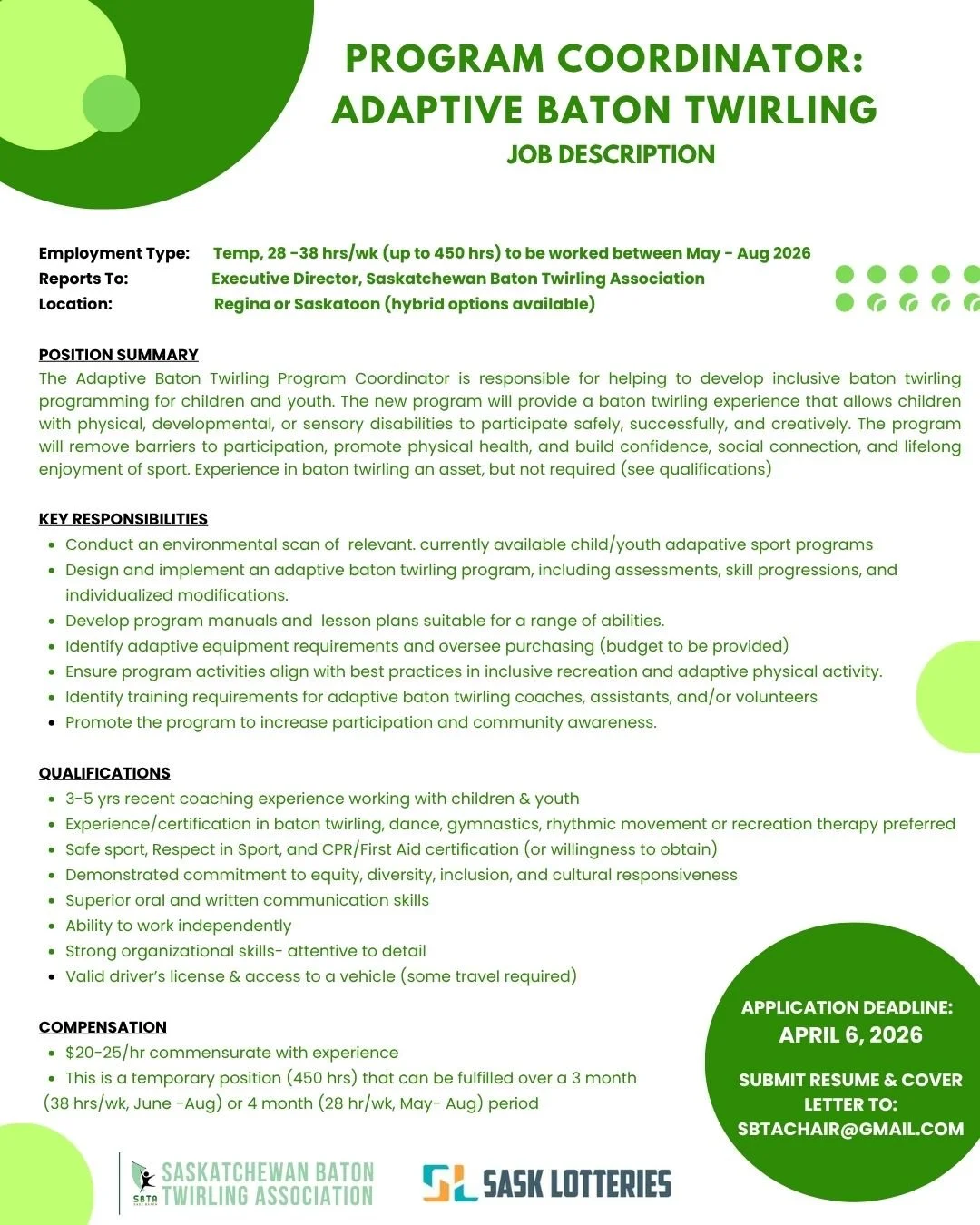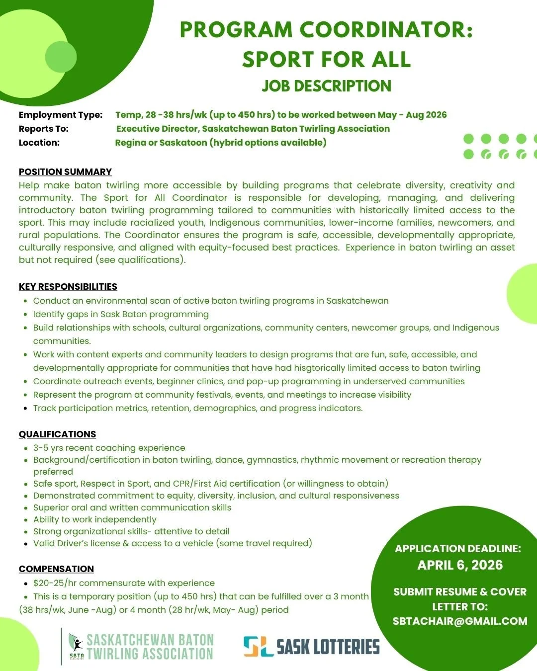 Application Deadline: Submit resumรฉ and cover letter to sbtachair@gmail.com by April 6, 2026.